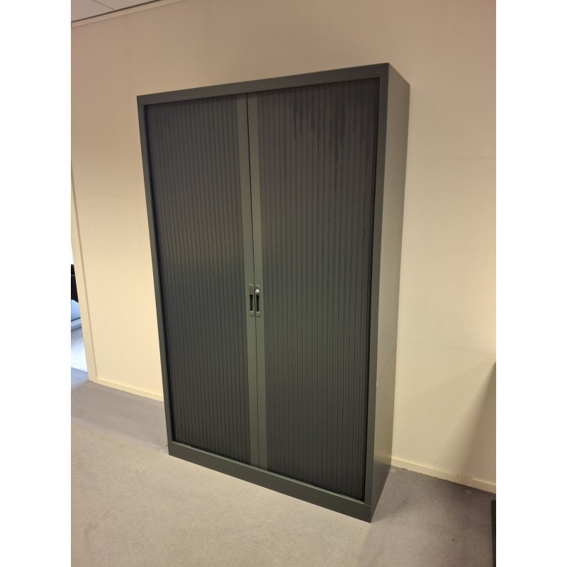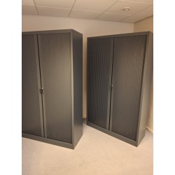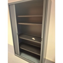 Zwarte roldeurkast met 4 legborden